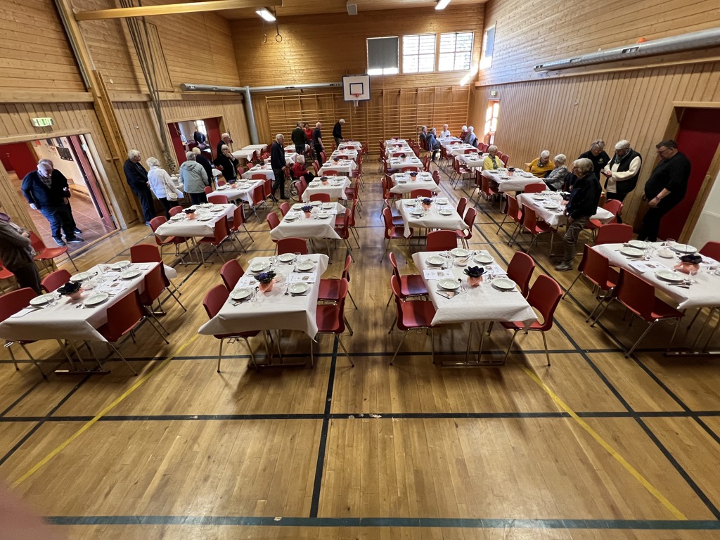 Åresalg er et fast innslag, og publikum kjøpte villig vekk, og det var trekning av 6 fruktkorger og rundt 40 andre gevinster. Klubben fikk mange takksigelser for god mat og en trivelig kveld fra de mange frammøtte!